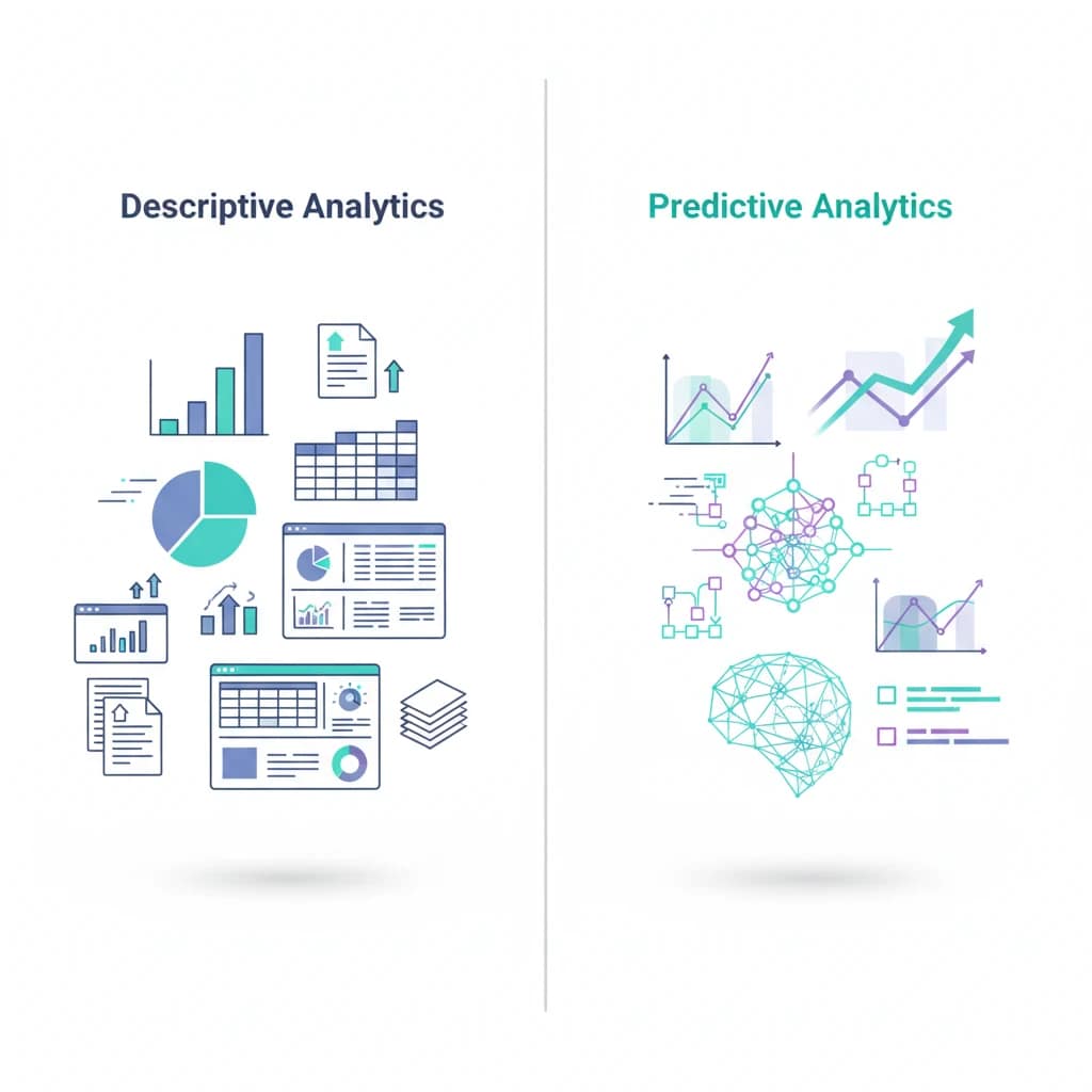 یکی از مهم‌ترین جنبه‌های تفاوت هوش تجاری و علم داده، نوع تحلیلی است که هر کدام ارائه می‌دهند. هوش تجاری عمدتاً تحلیل توصیفی انجام می‌دهد و تصویری شفاف از گذشته و حال ارائه می‌کند. در مقابل، علم داده تحلیلی تشخیصی و پیش‌بینی‌کننده دارد و به دنبال کشف علت‌ها و روندهای آینده است.