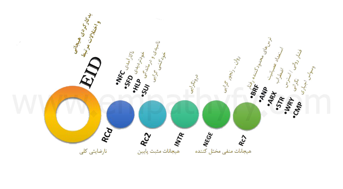 - RC7 (Dysfunctional Negative Emotions – DNE) هیجانهای منفی ناکارآمد – اضطراب، خشم، تحریکپذیری ناسازگارانه