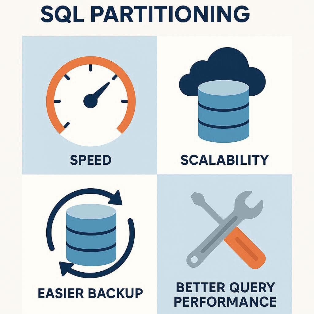 با بخشبندی دادهها، SQL فقط پارتیشن مربوط به دادههای مورد نیاز را جستجو میکند. مثلاً اگر بخواهید فروش سال ۲۰۲۵ را ببینید، فقط همان پارتیشن خوانده میشود نه کل جدول. این ویژگی باعث بهبود چشمگیر سرعت اجرای کوئریها میشود.