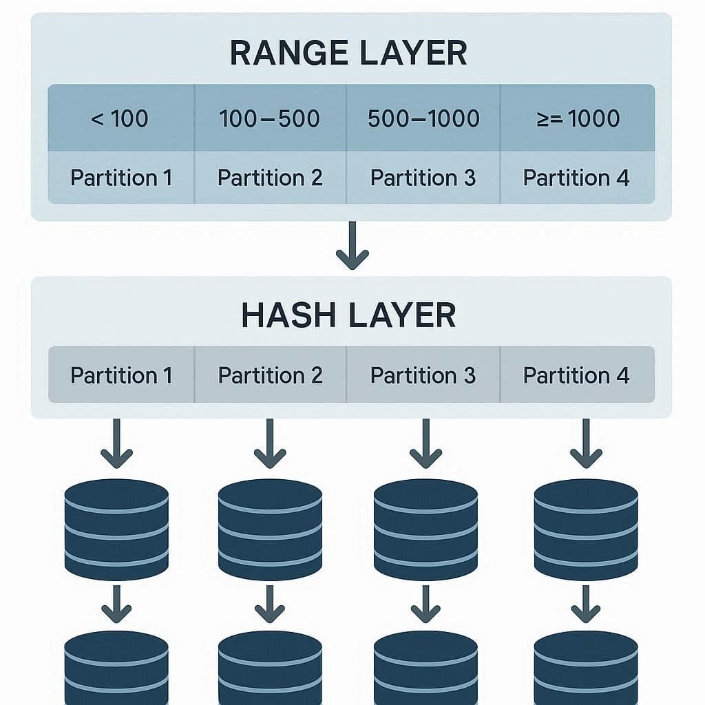 این روش ترکیبی از دو مدل Range و List است. برای مثال، دادهها ابتدا بر اساس سال (Range) تقسیم میشوند، سپس درون هر سال بر اساس کشور (List) دستهبندی میشوند. این مدل در سیستمهای مالی بینالمللی بسیار پرکاربرد است.