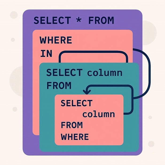 زیرکوئریها امکان استفاده از یک کوئری در داخل کوئری دیگر را فراهم میکنند. همچنین CTE یا Common Table Expression به خواناتر شدن کوئریهای پیچیده کمک میکند. این بخش از راهنمای دستورات SQL برای پروژههای تحلیلی و دادهمحور بسیار ارزشمند است.