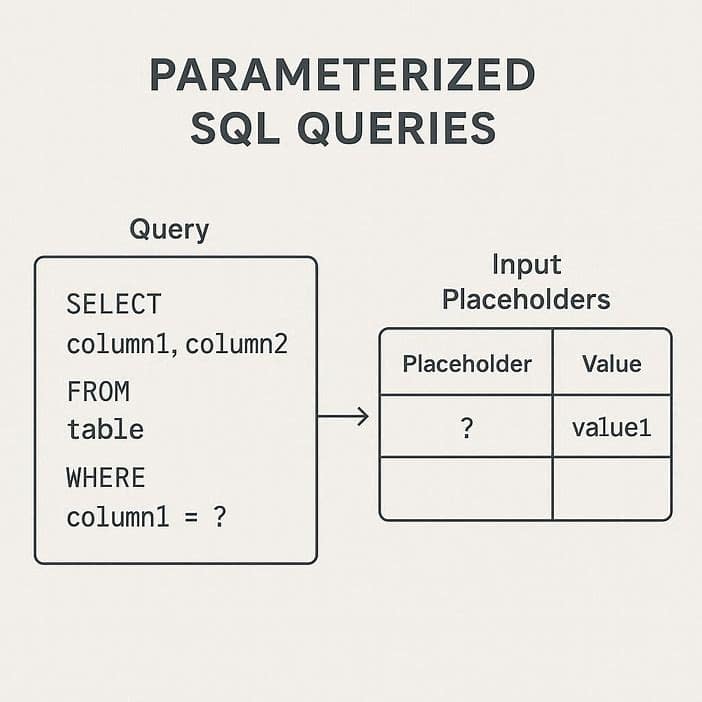 یکی از قویترین و مطمئنترین روشها برای جلوگیری از SQL Injection، استفاده از Prepared Statements یا کوئریهای پارامتری است. در این روش، ساختار کوئری SQL از دادههای ورودی جدا میشود و ورودی کاربر بهعنوان پارامتر به کوئری ارسال میگردد.